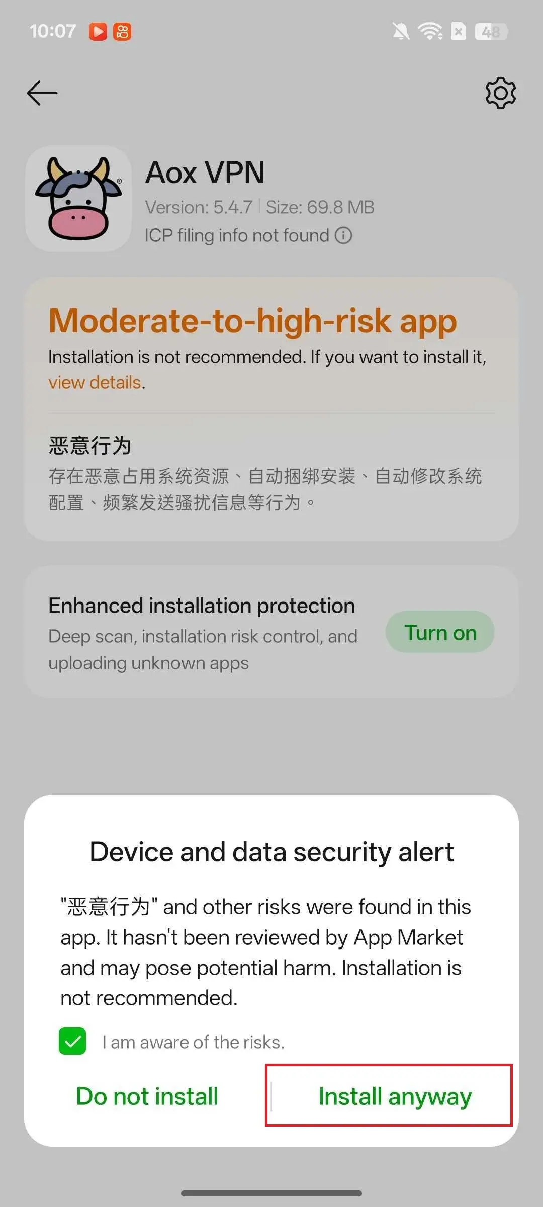 Select Install Anyway.