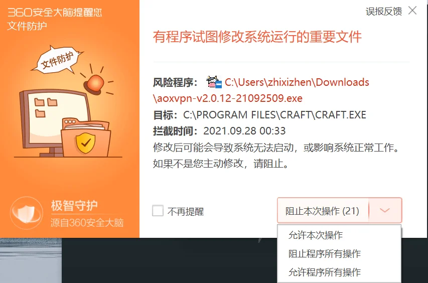 安装过程中若电脑安装 360 等软件,请点击 “许程序所有操作” 继续进行。