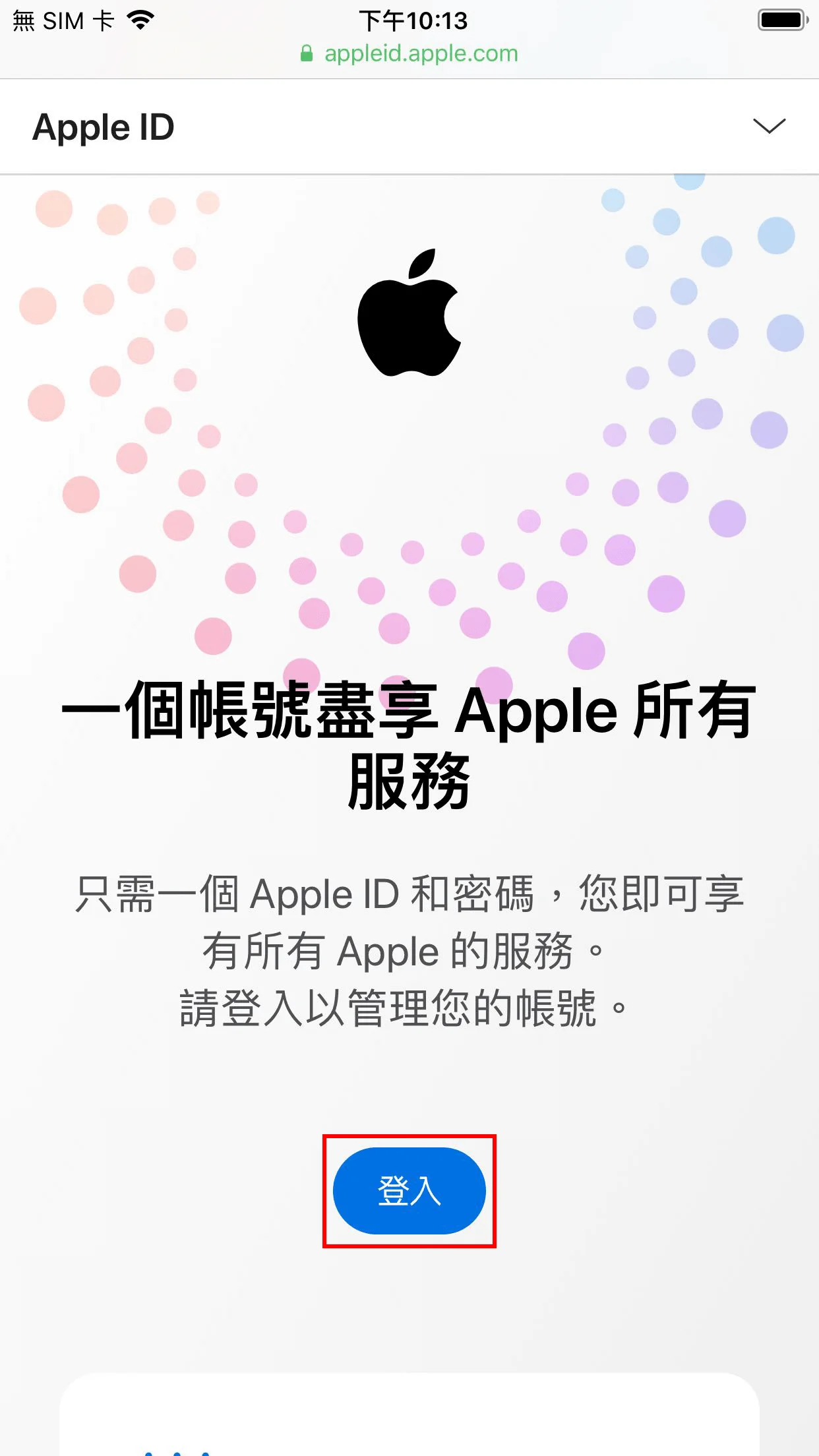 登入進入 Apple 官網,點選 “登入”,輸入自己的 Apple ID。