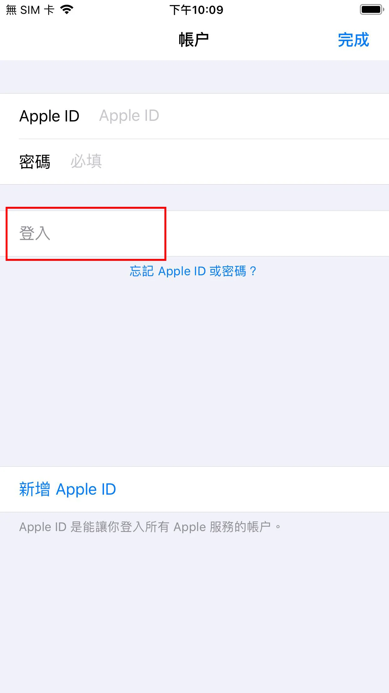 在 App Store 中重新登錄您的 Apple ID,輸入ID和密碼之後,請點擊下方 “登入” 按鈕,不要點擊右上角的完成。